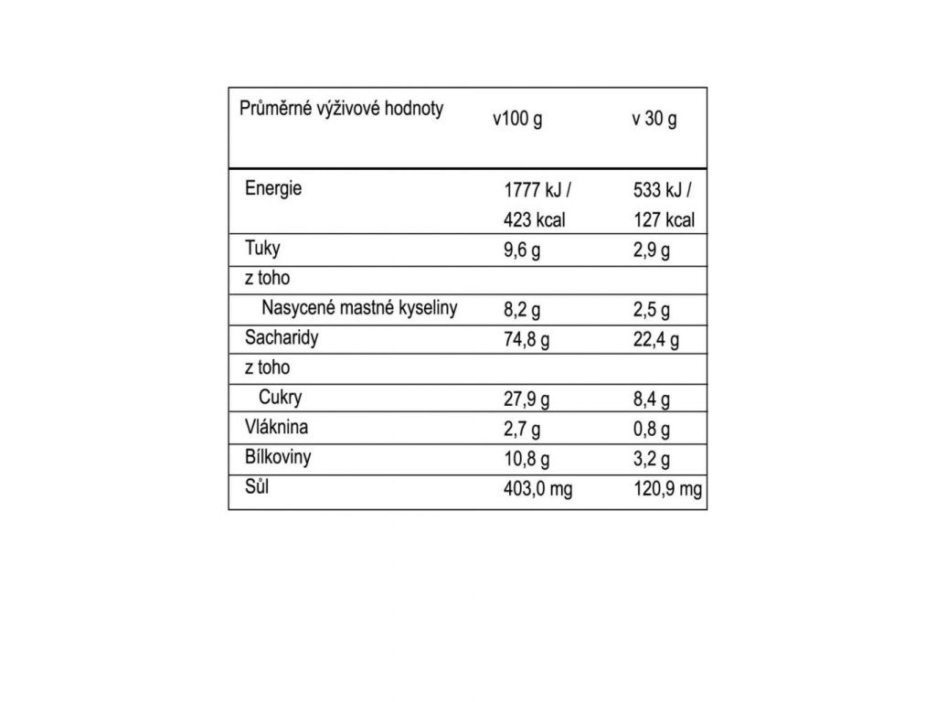 Zloženie: prášok zo sójových bôbov 46%, sladový extrakt 21%, rastlinná náhrada smotany (sušený glukózovo-fruktózový sirup, rastlinný tuk, mliečna bielkovina, emulgátory), riboflavín, cukor, mycélium LESKLOKORKA lesklé (Ganoderma mycélium) 2%, Omega 3, Omega 6 a lecitín